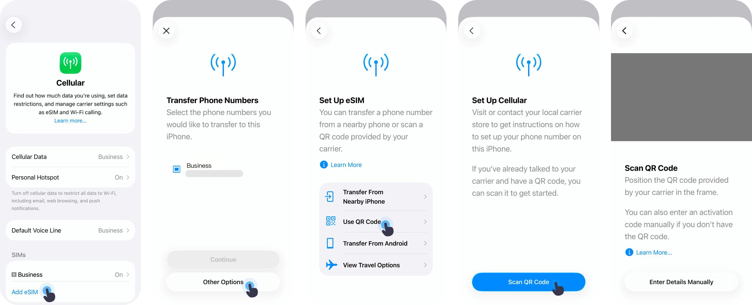 Si no puede instalar su eSIM automáticamente, o si compró su eSIM en un dispositivo separado, aún puede instalar su eSIM manualmente.