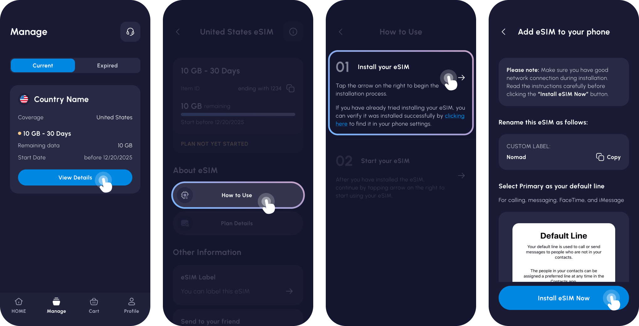 1Vaya a la página Administrar eSIM en su aplicación Nomad para iOS o Android