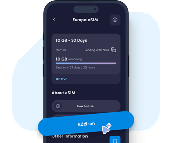 Tenga en cuenta que los complementos solo se pueden comprar cuando su eSIM no haya caducado y cuando su plan de datos actual no esté agotado. Asegúrese de agregar más datos con anticipación.