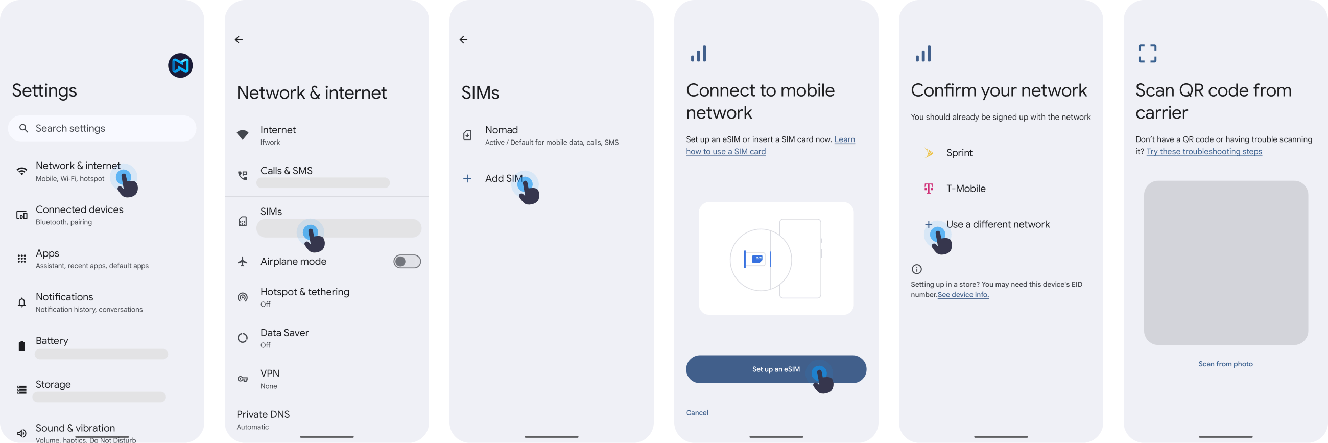 La forma recomendada de instalar tu eSIM es a través del código QR que te proporcionamos mediante instrucciones en la aplicación y por correo electrónico (si no estás en Nomad, la mayoría de los proveedores te enviarán las instrucciones por correo electrónico).